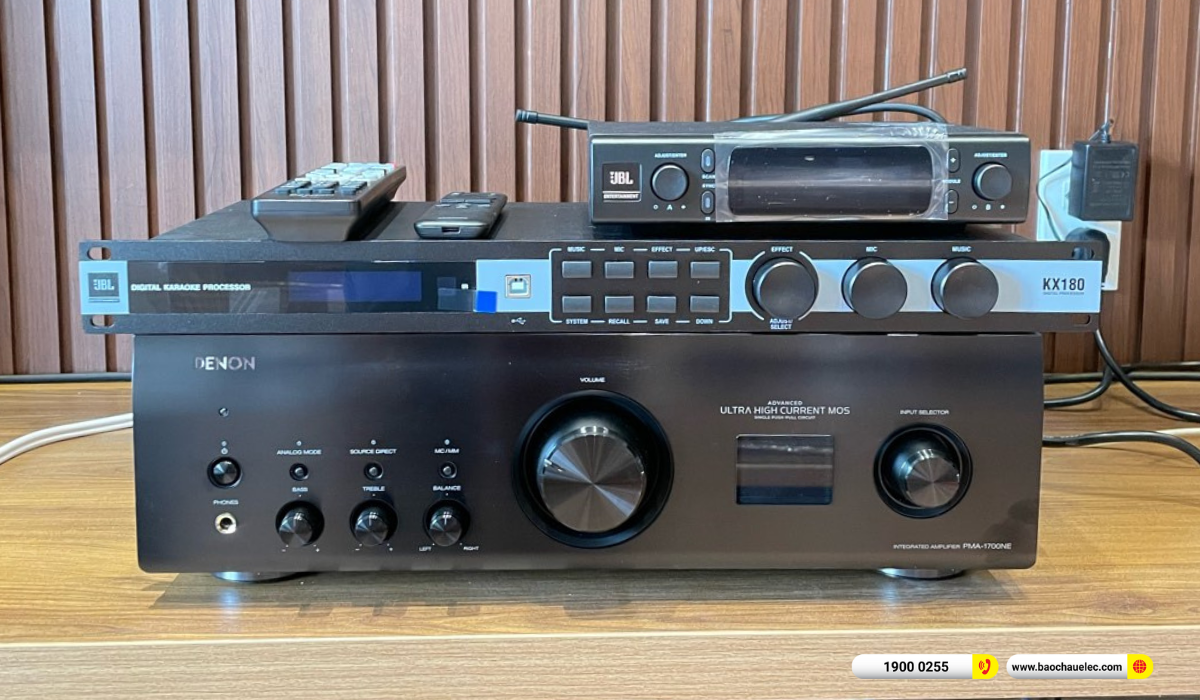Bên cạnh đó, amply nghe nhạc Denon PMA 1700NE là “trái tim” điều khiển và khuếch đại tín hiệu âm thanh. Với công suất mạnh mẽ và khả năng xử lý âm thanh chi tiết, chiếc amply này đảm bảo mọi dải tần đều được tái hiện rõ ràng, đầy cảm xúc. Kết hợp với vang số JBL KX180A, người dùng có thể dễ dàng tinh chỉnh âm sắc, cân bằng âm thanh, chống hú rít micro hiệu quả - điều rất quan trọng trong các hệ thống karaoke gia đình cao cấp.