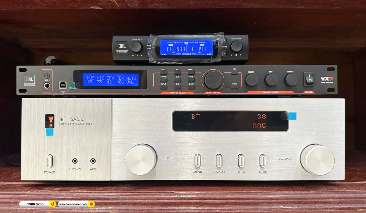 Phần xử lý âm thanh được đảm nhiệm bởi vang số JBL VX9, giúp giọng hát mượt mà, hạn chế hú rít và dễ tinh chỉnh theo không gian phòng. Loa sub điện JBL Studio 660P bổ sung dải trầm sâu, chắc gọn, tạo nền âm đầy đặn, giúp bản nhạc và tiếng hát trở nên giàu cảm xúc hơn.