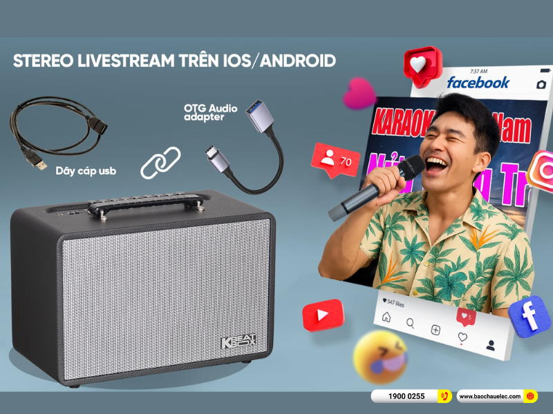 - MP3 USB Type A (OTG): phát nhạc trực tiếp từ USB, hỗ trợ livestream và ghi âm