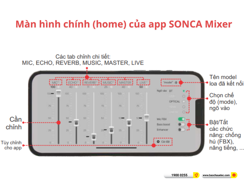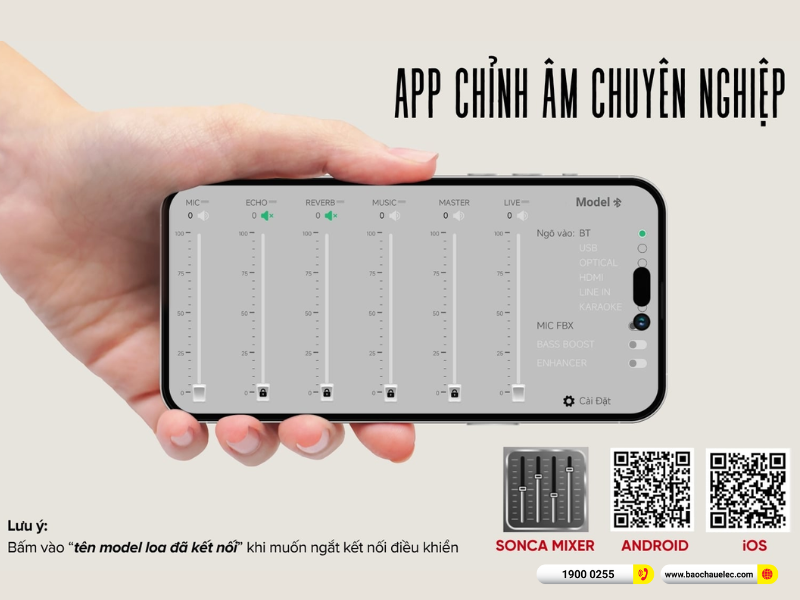 Thông qua ứng dụng, bạn có thể điều chỉnh nhạc nền, micro, Echo – Reverb – Delay cũng như EQ chi tiết để phù hợp với không gian phòng và gu nghe nhạc cá nhân. Nhờ đó, dù hát karaoke, nghe nhạc hay livestream, âm thanh luôn đạt trạng thái tối ưu và dễ nghe nhất.