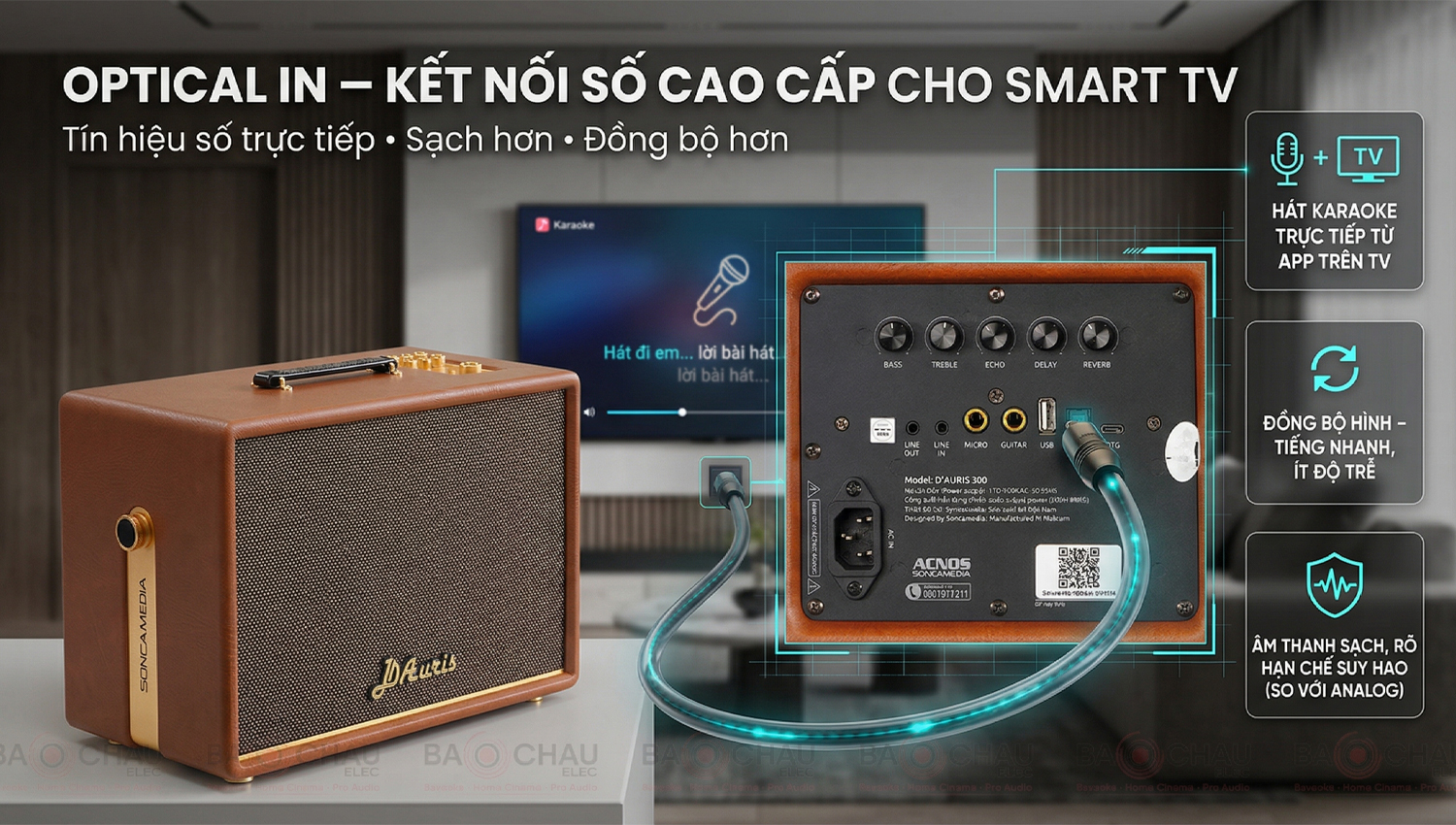 8. Kết nối OPTICAL - Hát karaoke trực tiếp với Smart TV, âm thanh số sạch và rõ