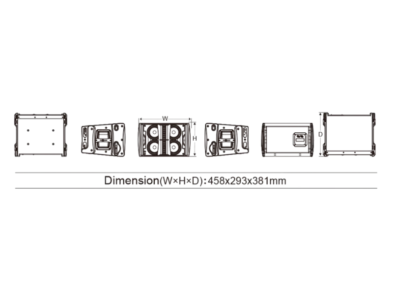 - Kích thước loa (W × H × D): 458 × 293 × 381 mm