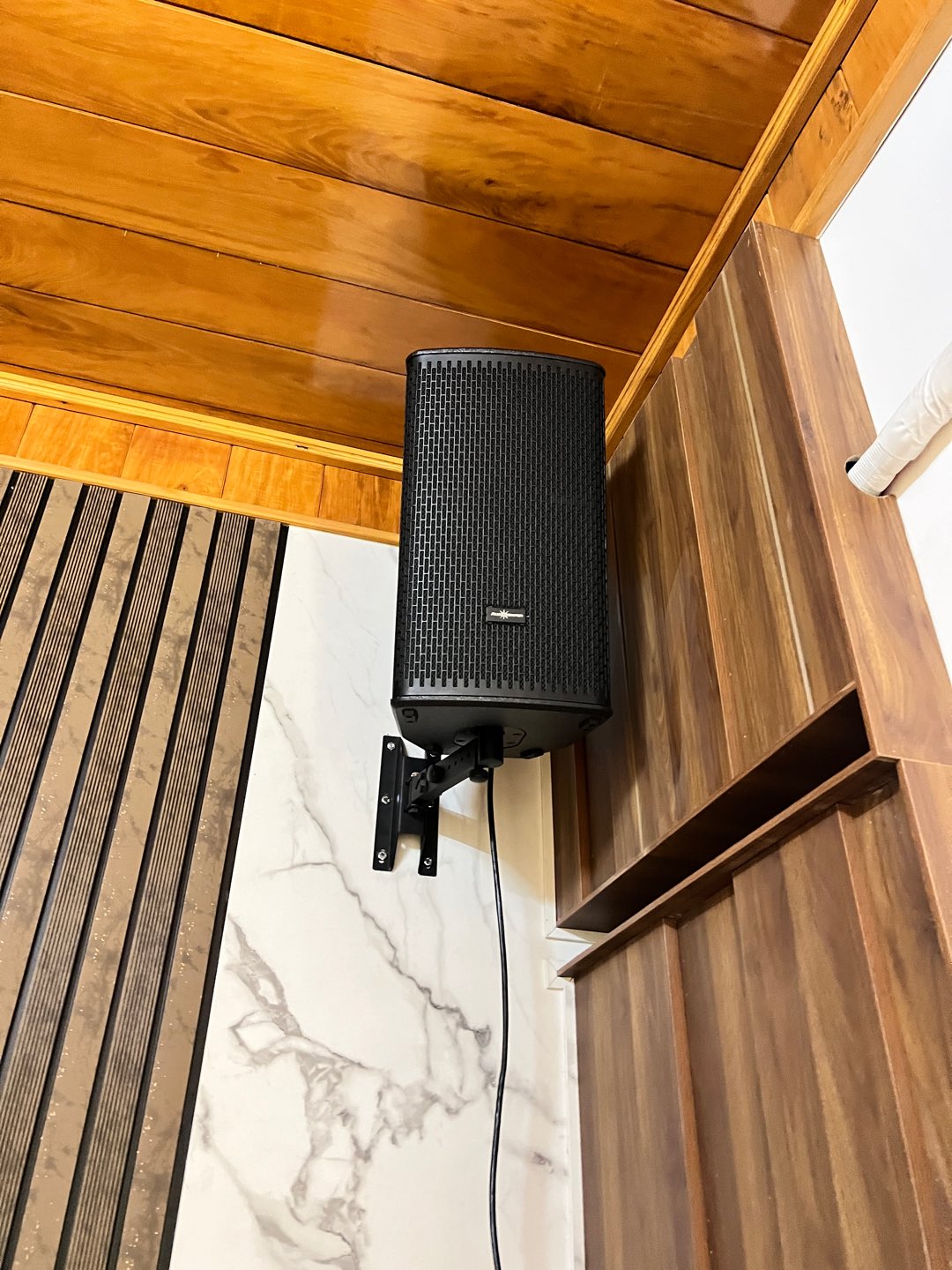 Thùng loa được làm từ gỗ cao cấp với thiết kế đối xứng đa năng, gia công CNC chính xác. Kết cấu này không chỉ bền bỉ mà còn đảm bảo chất lượng âm thanh ổn định, mạnh mẽ và rõ ràng.