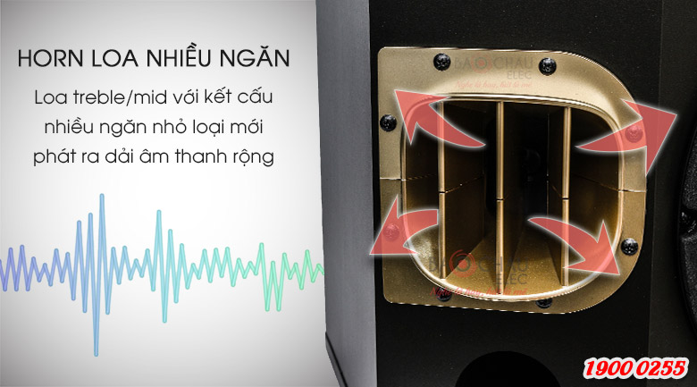 Một điểm thiết kế không thể không nhắc tới đó chính là các horn loa, được chia thành 4 ô thông qua 3 vách ngăn, nhà thiết kế đã vô cùng khéo léo khi thiết kế miệng horn là một đường tròn mềm, các vách ngăn có các hướng khách nhau tạo ra những đường biên giới và hướng âm thanh vào tất cả các vị trí khác nhau, đảm bảo âm thanh thoát ra luôn rõ ràng và lan tỏa.