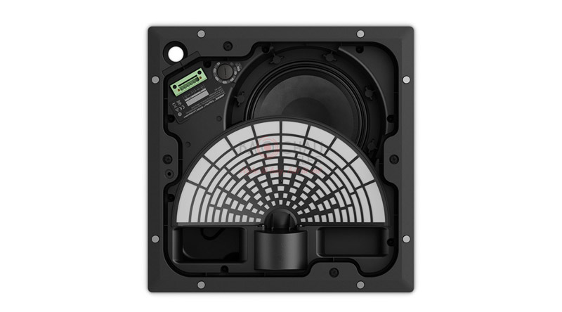 Thiết kế đặc trưng của một loa âm trần với nón loa hướng xuống, thùng loa có kích thước vừa phải 339 x 339 x 249 mm. Khi lắp đặt, thùng loa được giấu phía trong trần nhà, nón loa hướng âm thanh xuống không gian phía dưới tối ưu cho mọi không gian, dễ dàng lắp đặt.