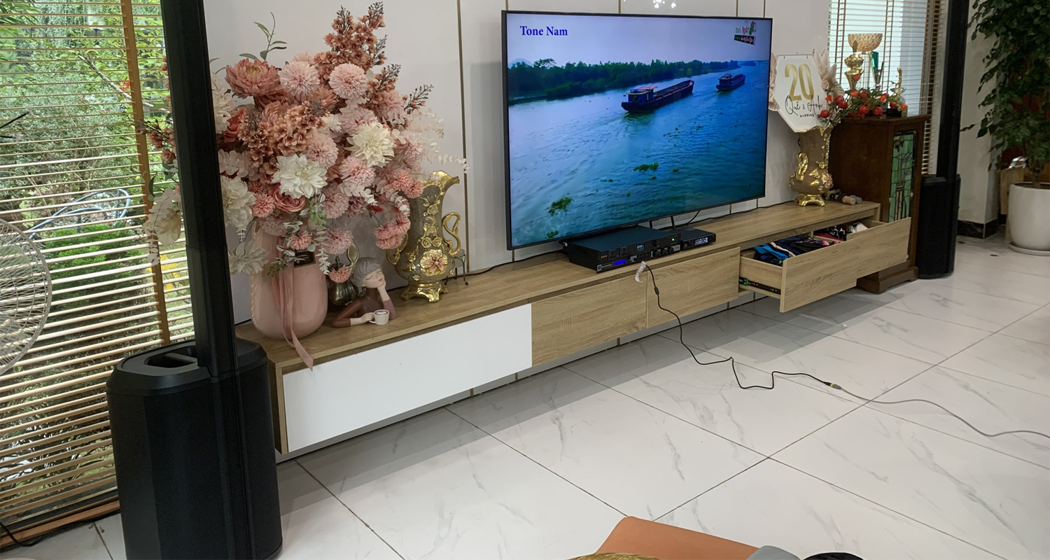 - Sử dụng nghe nhạc hát karaoke giải trí kết hợp tạo nên bộ dàn karaoke gia đình cực hay.