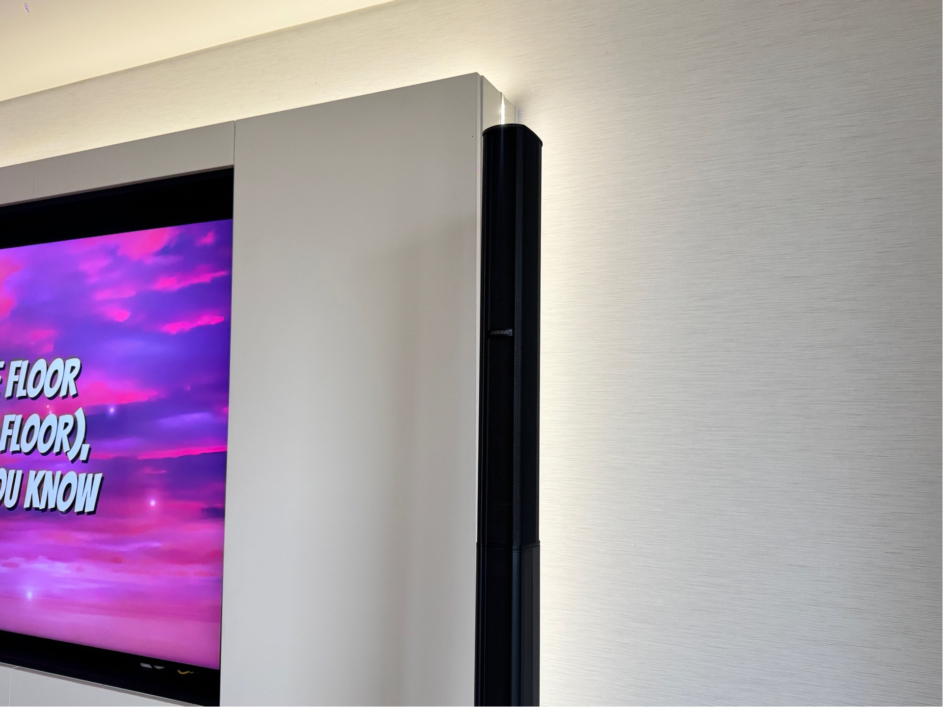 - 1 thanh loa ARRAY: Đảm nhiệm vai trò khuếch tán âm thanh theo chiều dọc, đem đến âm thanh đồng đều trong không gian rộng.