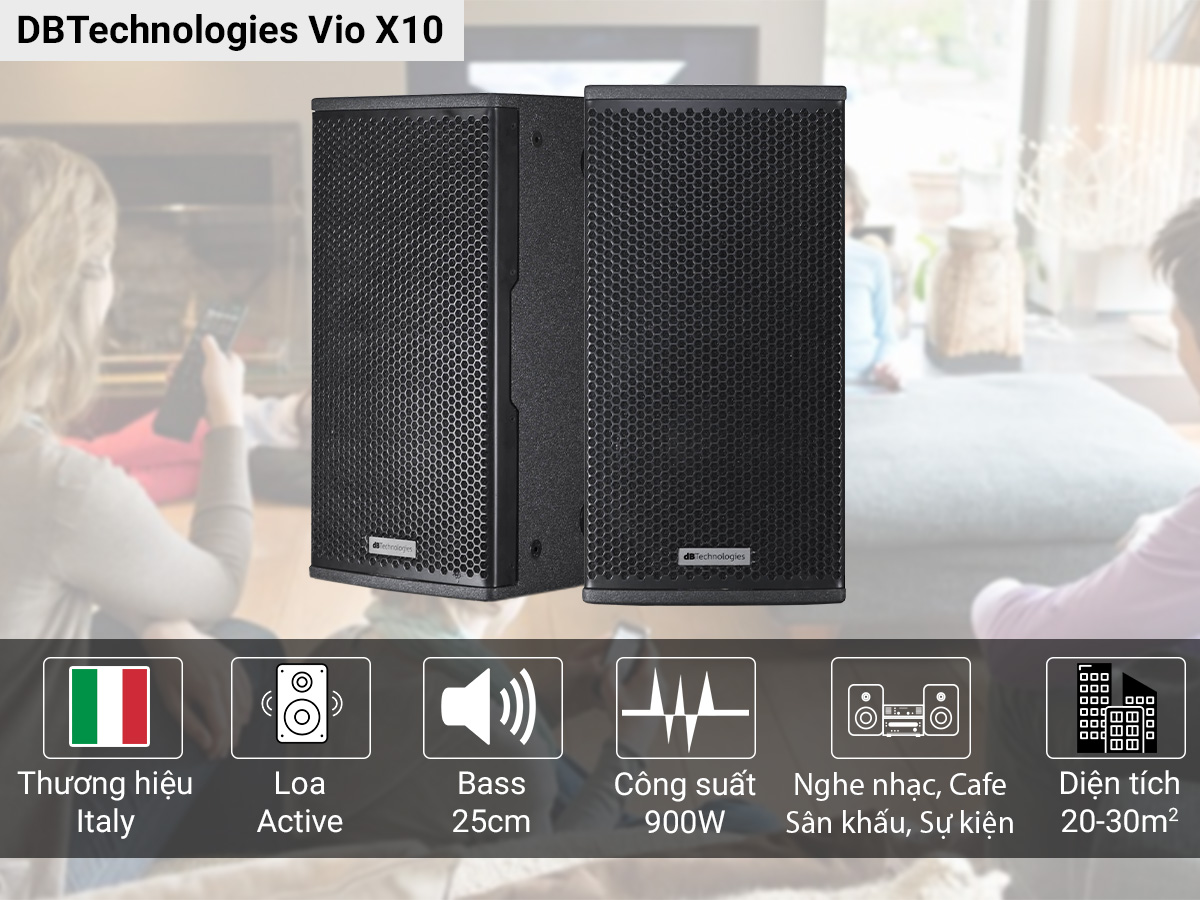 Vio X10 là mẫu loa full active với công suất lên tới 900W, nhiều công nghệ và cải tiến mới, sản xuất trực tiếp tại Intaly bởi các kỹ sư giàu kinh nghiệm của dBTechnologies. Vio X10 chắc chắn sẽ là một lựa chọn tuyệt vời cho những người đang tìm kiếm một chiếc mẫu loa có công suất ấn tượng, âm thanh đỉnh cao và thiết kế gọn nhẹ phù hợp với nhiều không gian.