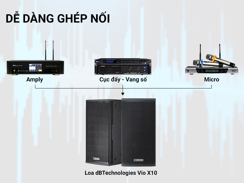 Điểm độc đáo của dBTechnologies Vio X10 nằm ở khả năng ghép nối một cách linh hoạt. Bạn có thể xếp chồng lên nhau tạo ra một hệ thống âm thanh hiệu quả và linh hoạt.