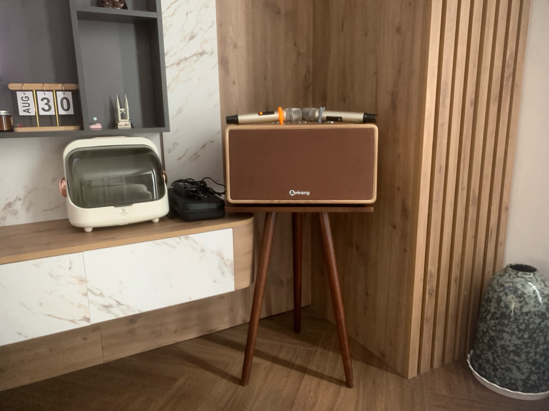 Không chỉ sở hữu thiết kế đẹp mắt, Arirang MB2iw còn gây ấn tượng với vẻ ngoài mạnh mẽ, chắc chắn nhờ lớp vỏ ngoài làm từ vật liệu cao cấp, giúp bảo vệ tốt các linh kiện bên trong. Dù có kích thước nhỏ gọn, loa vẫn mang đến sự mạnh mẽ trong thiết kế, dễ dàng di chuyển nhờ tay cầm chắc chắn và bánh xe linh hoạt. Đặc biệt, với gam màu đen tinh tế kết hợp với họa tiết vân gỗ sang trọng, sản phẩm không chỉ hiện đại mà còn phù hợp với nhiều không gian sử dụng, từ gia đình đến các sự kiện ngoài trời.