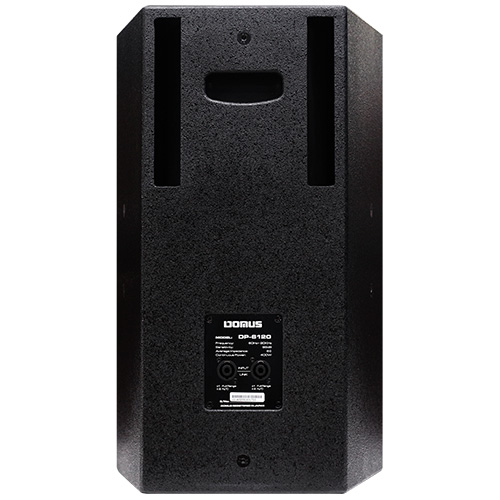 Mặt sau của loa Domus DP 6120 có thông tin của loa như trở kháng, công suất hay tần số đáp ứng của loa và đặc biệt không thể thiếu là các ngõ kết nối loa để đảm bảo được sự ổn định của tín hiệu âm thanh. Thêm vào đó, trên thân loa cũng được nhà sản xuất trang bị tay cầm giúp cho việc di chuyển dễ dàng hơn