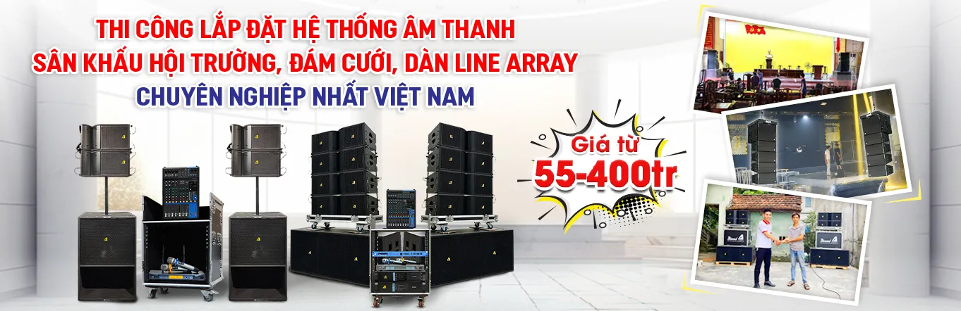 Loa line array là dòng cao cấp nhất trong các hệ thống hội trường, được sử dụng rộng rãi trong các sân khấu lớn, liveshow, nhà thi đấu, nhà hát. Cấu trúc xếp chồng nhiều module giúp âm thanh lan tỏa xa và đều, không bị thất thoát dù ở khoảng cách hàng chục mét.