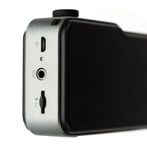 Góc phải của loa Jamo DS3 chính là cổng kết nối bao gồm: cổng sạc micro USB, cổng âm thanh 3,5mm và khe đọc thẻ nhớ SD.
