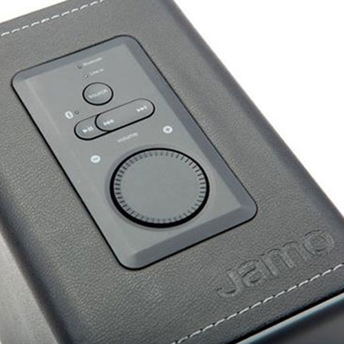 Loa được bọc bởi 1 lớp vân da tinh tế, phía trên của loa đặt các nút điều khiển giúp các bạn có thể tinh chỉnh âm lượng, tắt/bật, hoặc nghe điện thoại nhanh chóng.