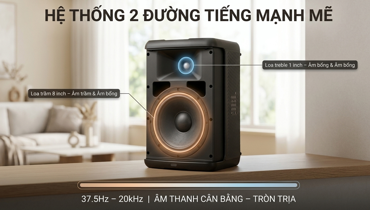 Âm lượng mạnh mẽ – Phù hợp cho không gian từ 15 – 35m²