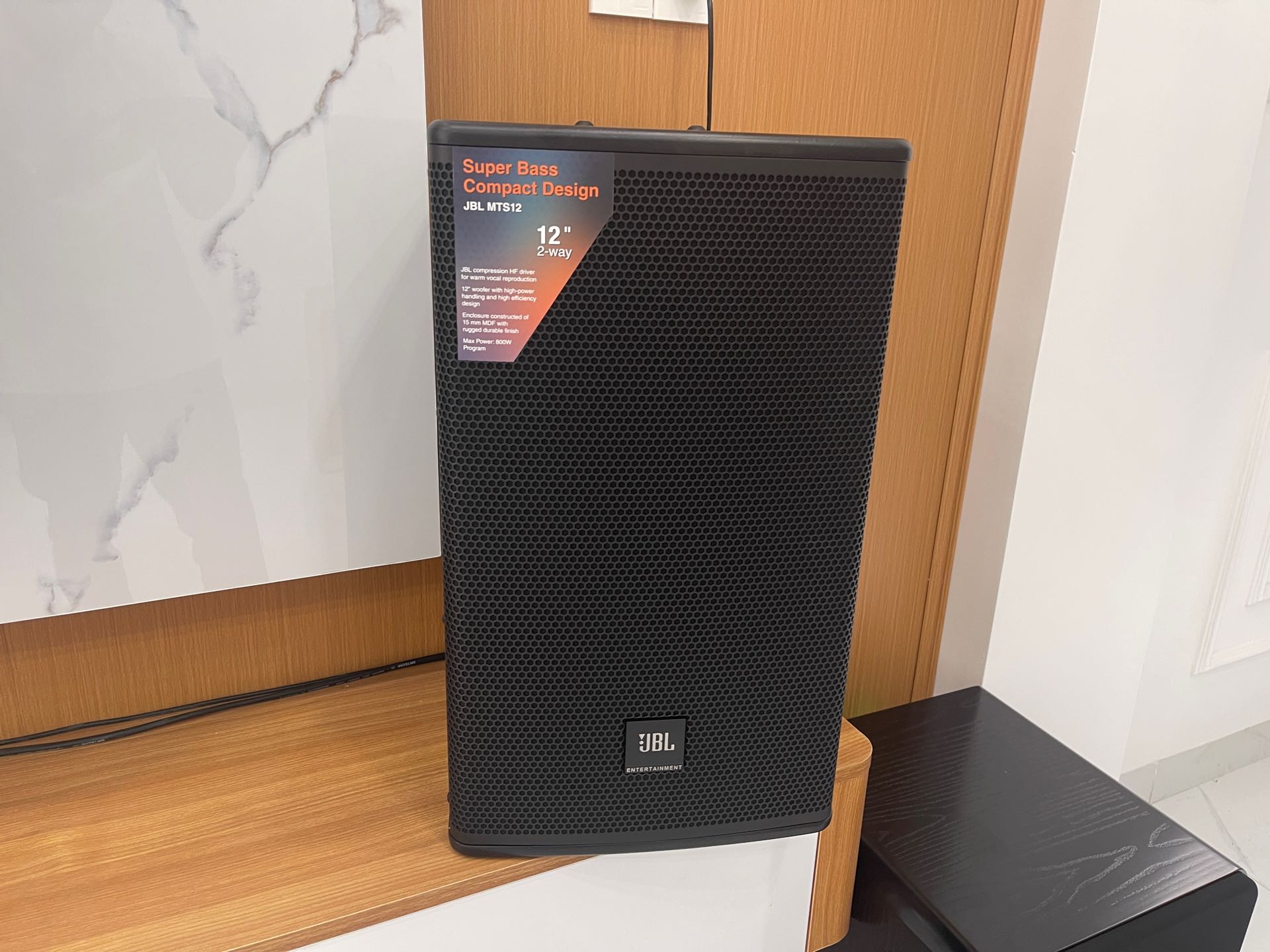 Đặc biệt, nếu những loa khác logo được đặt chính giữa thì loa JBL MTS12 được đặt ở phía dưới loa.