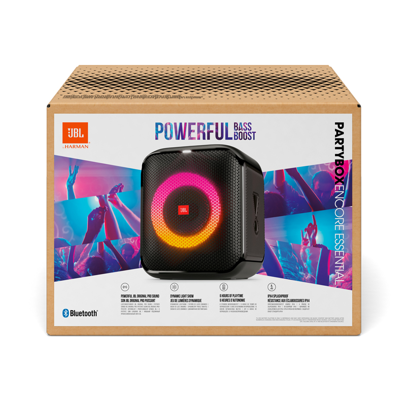 Loa JBL PartyBox Encore Essential di động mang đến cho bạn 6 giờ vui chơi không ngừng nghỉ. Với tay cầm dễ dàng cầm và di chuyển và thiết kế kháng nước IPX4, bạn luôn có thể mang theo bên mình. Khiêu vũ trên bãi biển? Chill bên hồ bơi? Giữ cho âm nhạc luôn sôi động ở bất cứ đâu với âm thanh JBL Original Pro tuyệt vời và âm trầm sâu lắng. Hãy để màn trình diễn ánh sáng hòa cùng tâm trạng hoặc sử dụng công nghệ True Wireless Stereo ghép nối loa để có âm thanh lớn hơn. Bạn luôn nắm quyền kiểm soát với ứng dụng PartyBox, cho phép bạn tùy chỉnh màu sắc âm nhạc hay tuỳ biến hiệu ứng ánh đèn sân khấu để 'match' mọi hoàn cảnh của cuộc vui.
