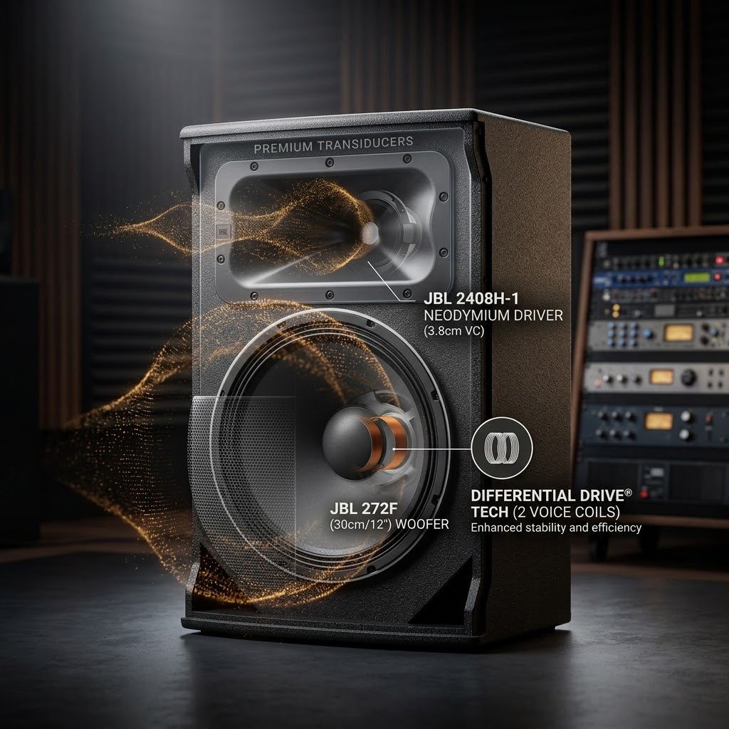 Loa sử dụng woofer JBL 272F đường kính 30cm kết hợp với driver nén neodymium JBL 2408H-1 với cuộn dây 3.8cm. Sự kết hợp này giúp tái tạo đầy đủ các dải tần, mang lại âm thanh rõ ràng, chi tiết và có độ động cao.