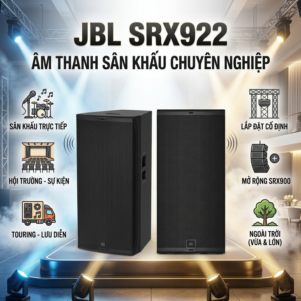 Tính ứng dụng của JBL SRX922 trong thực tế rất đa dạng, phù hợp nhiều mô hình âm thanh chuyên nghiệp nhờ công suất lớn, độ phủ ổn định và khả năng kiểm soát âm thanh chính xác. Các ứng dụng tiêu biểu như: