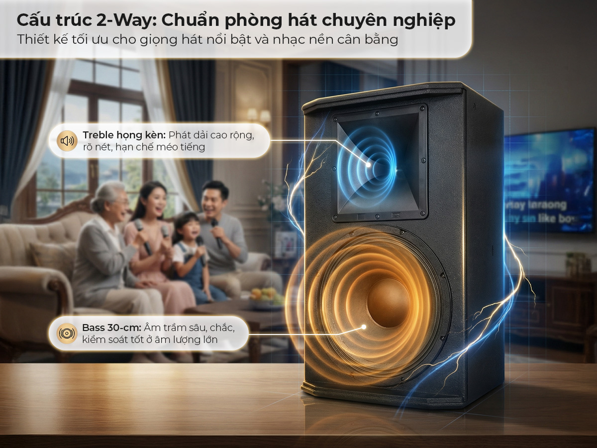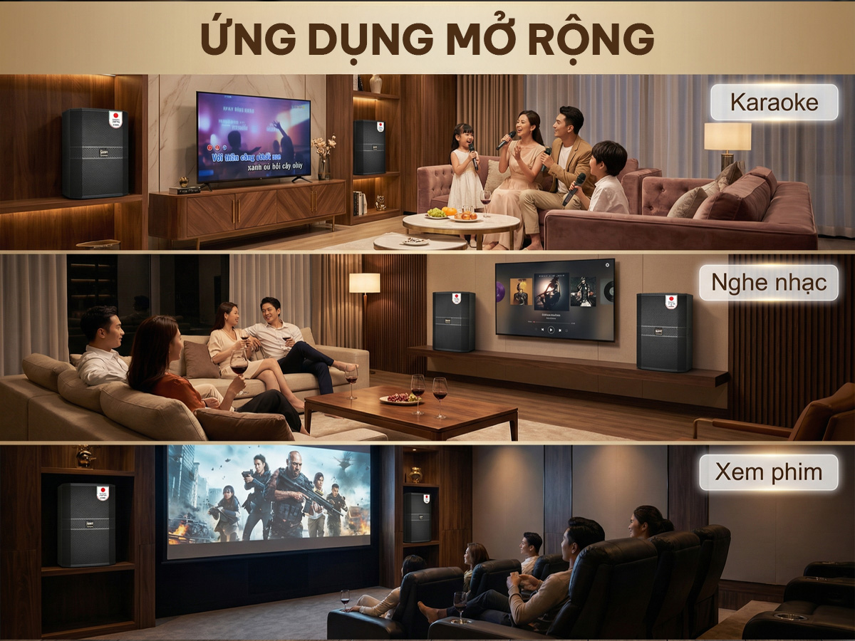 Sự kết hợp này tạo nên tổng thể cân bằng, ổn định và có độ động cao, phục vụ tốt cả nghe nhạc và hát karaoke, đặc biệt là các dòng nhạc cần cường độ lớn như remix, EDM, nhạc sống…