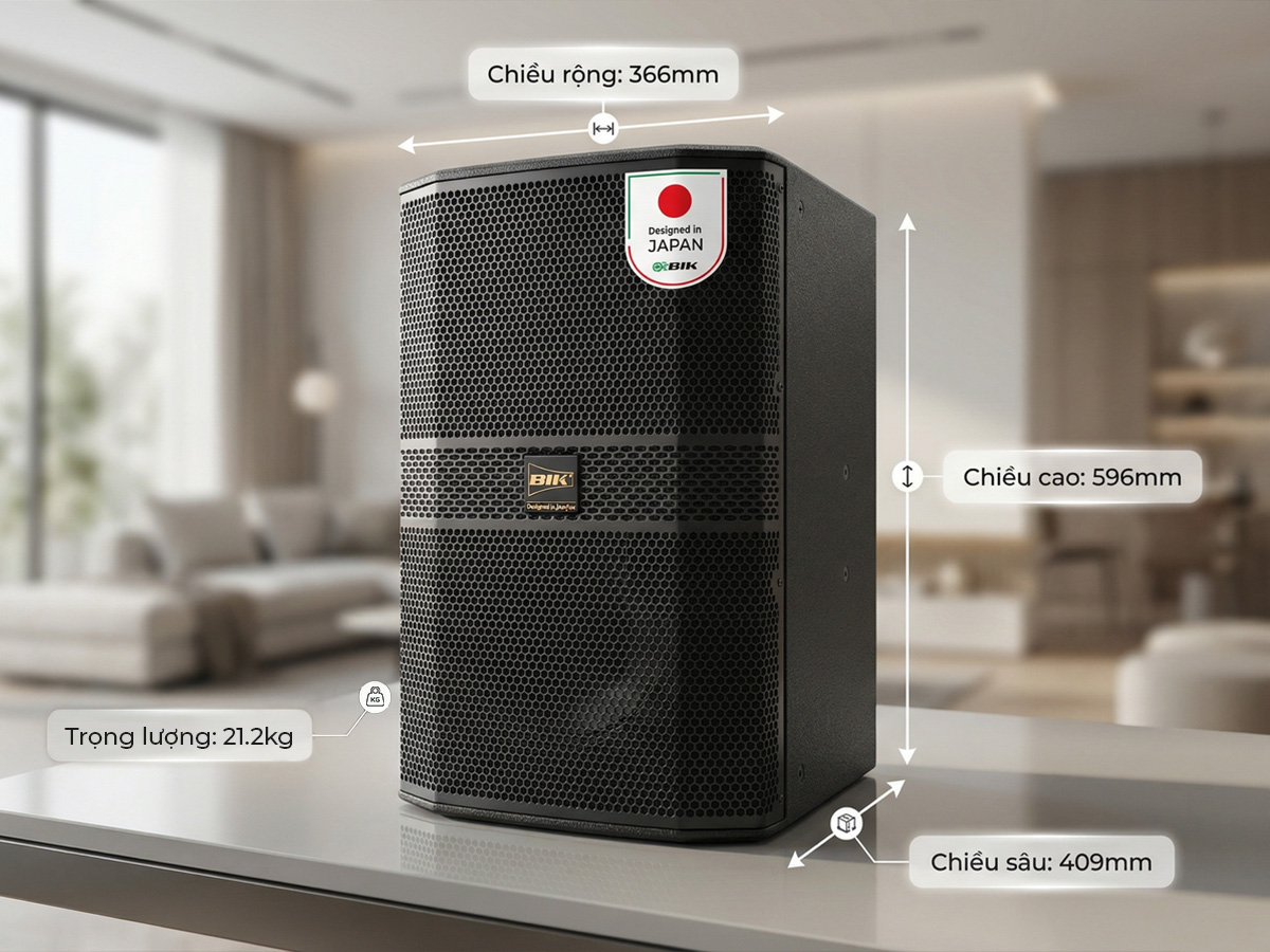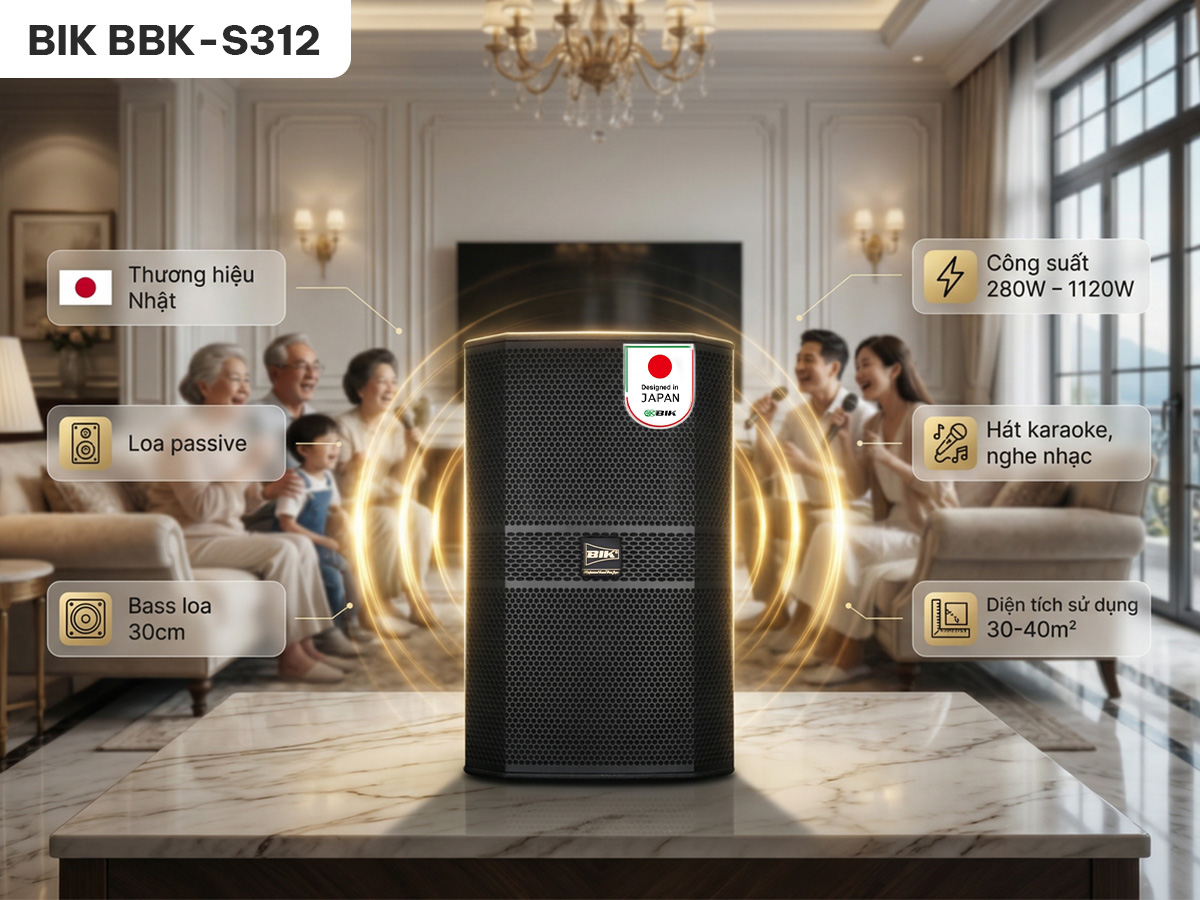 Loa BIK BBK-S312 là sản phẩm loa toàn dải cao cấp thuộc dòng loa biểu diễn chuyên nghiệp của thương hiệu BIK Nhật Bản. Với thiết kế mạnh mẽ, cấu hình loa lớn và hiệu suất âm thanh vượt trội, BBK-S312 không chỉ đáp ứng tốt cho hệ thống karaoke cao cấp mà còn phù hợp với các không gian hội trường, sân khấu biểu diễn đòi hỏi cường độ âm thanh lớn và độ phủ rộng.