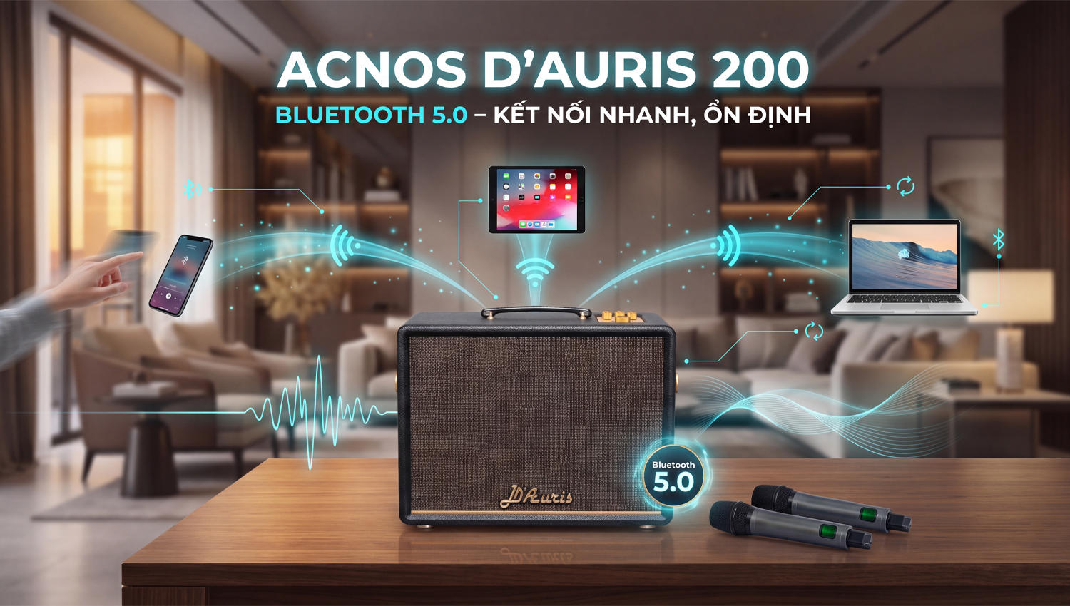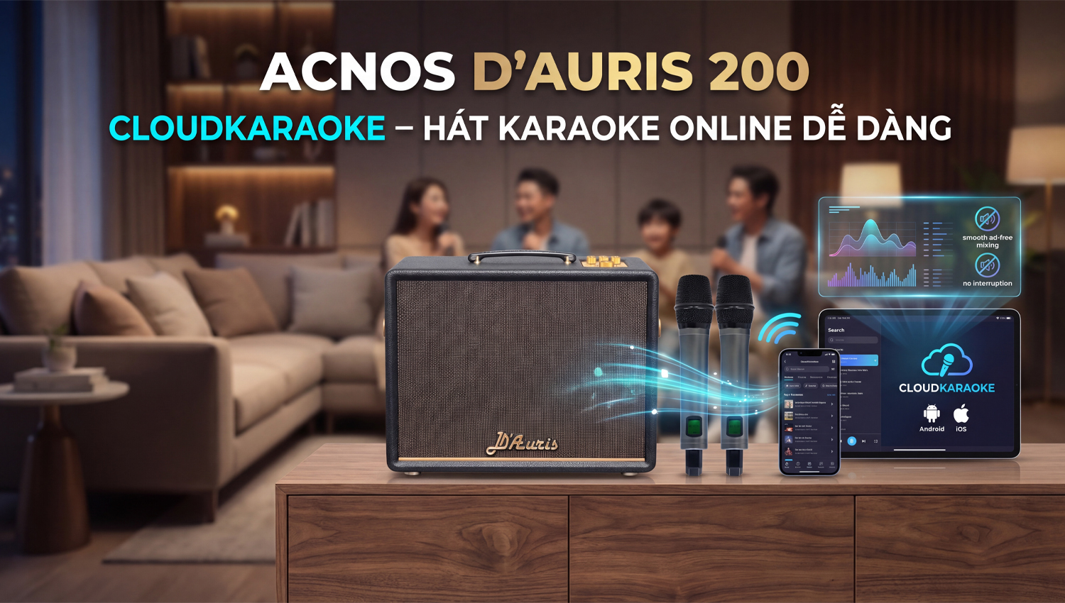 Sự kết hợp giữa loa, micro không dây và ứng dụng CloudKaraoke giúp Acnos D Auris 200 trở thành một hệ thống karaoke gọn nhẹ, hiện đại, phù hợp cho gia đình, tụ họp bạn bè hay giải trí cá nhân tại nhà.
