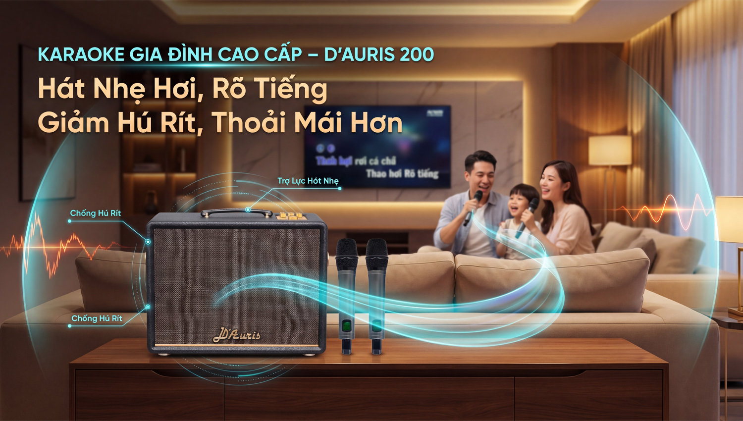 - Karaoke gia đình cao cấp: Phù hợp cho không gian phòng khách, phòng sinh hoạt chung, mang lại trải nghiệm hát karaoke rõ tiếng, nhẹ hơi, không hú rít.