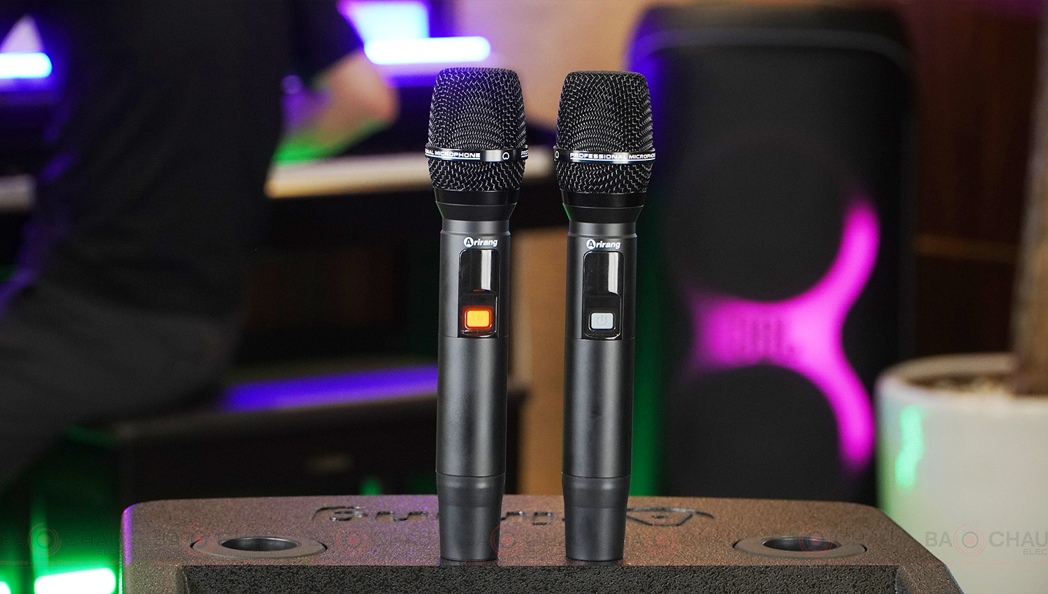 Bộ sản phẩm đi kèm 2 micro không dây UHF AR6, được thiết kế tinh tế và sang trọng với vỏ kim loại chắc chắn, cầm đầm tay mang đến cảm giác chuyên nghiệp khi biểu diễn. Micro sử dụng sóng UHF tần số cao, cho khả năng bắt sóng xa, ổn định và chống nhiễu tốt, đảm bảo tín hiệu luôn rõ ràng dù người dùng di chuyển xa khỏi loa.