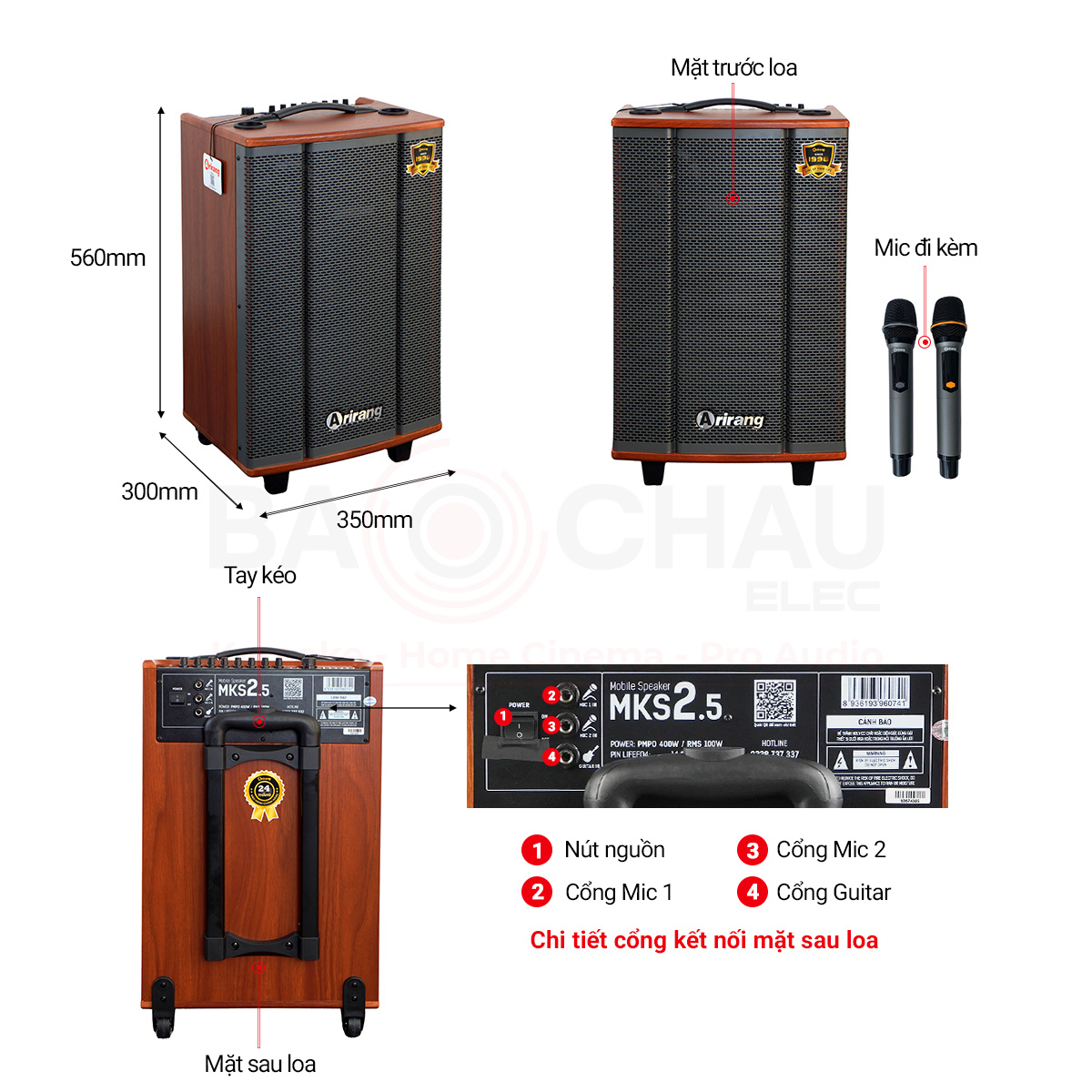 Hiện tại, loa kéo Arirang MKS2.5 chính hãng đã có mặt tại Bảo Châu Elec - Đơn vị uy tín chuyên phân phối các thiết bị karaoke và âm thanh chính hãng. Khi mua sắm tại đây, bạn sẽ được đảm bảo sản phẩm nguyên seal, chính hãng Arirang, đi kèm chế độ bảo hành rõ ràng, hỗ trợ giao hàng toàn quốc, tư vấn phối ghép và hướng dẫn sử dụng tận tình.