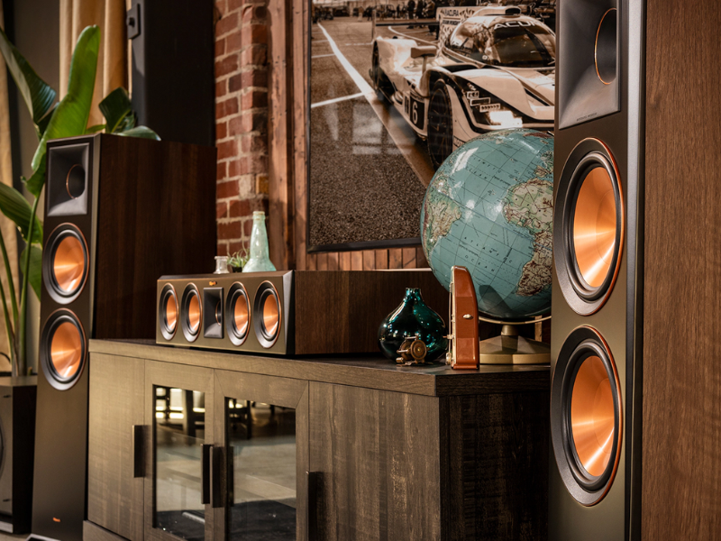 Về ngoại hình, Klipsch RP-8060FA mang đậm chất cao cấp với nhiều tùy chọn hoàn thiện như Ebony Vinyl, Walnut Vinyl và đặc biệt là bản Piano Gloss bóng gương. Phiên bản Piano Gloss được đánh bóng thủ công từng lớp sơn, tạo nên hiệu ứng ánh sáng phản chiếu sang trọng như các nhạc cụ cao cấp. Chân đế bằng nhôm đúc nguyên khối không chỉ đẹp mắt mà còn giúp tách loa khỏi mặt sàn, giảm rung chấn và cộng hưởng, đồng thời tạo nên tổng thể vững chãi, hiện đại và đậm chất kỹ thuật.