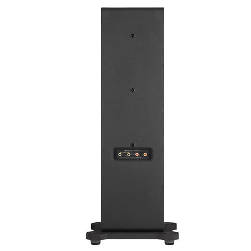 Mặt sau là các đầu kết nối thiết bị khác, nâng đỡ thùng loa nghe nhạc là hệ thống chân đế kim loại giúp loa bám bề mặt tốt và hạn chế hiện tượng rung lắc xảy ra khi loa hoạt động.