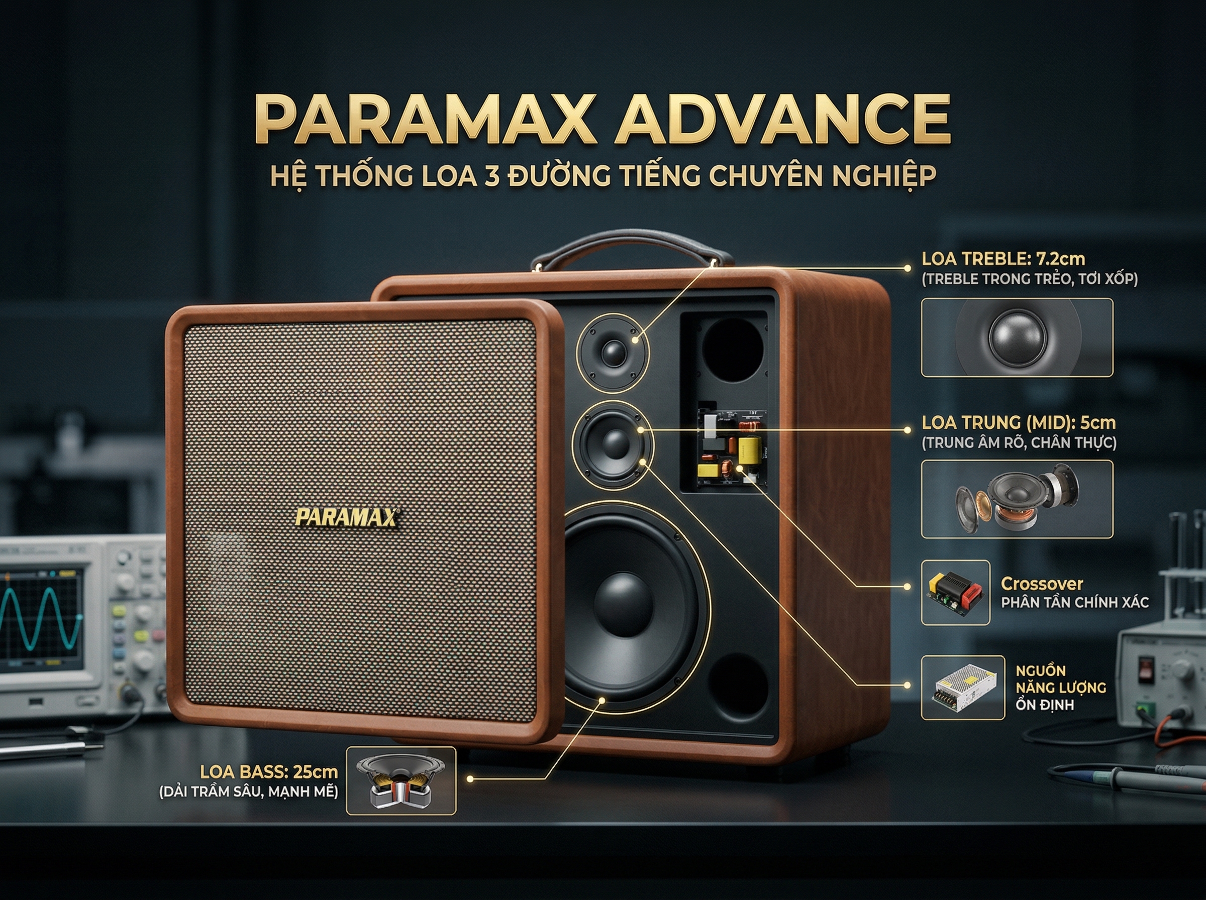 Khác biệt hoàn toàn với các dòng loa kéo giá rẻ trên thị trường vốn thường chỉ có 2 đường tiếng, Paramax Advance được trang bị hệ thống 3 đường tiếng tách bạch, mang lại dải âm chi tiết và đầy đủ nhất: