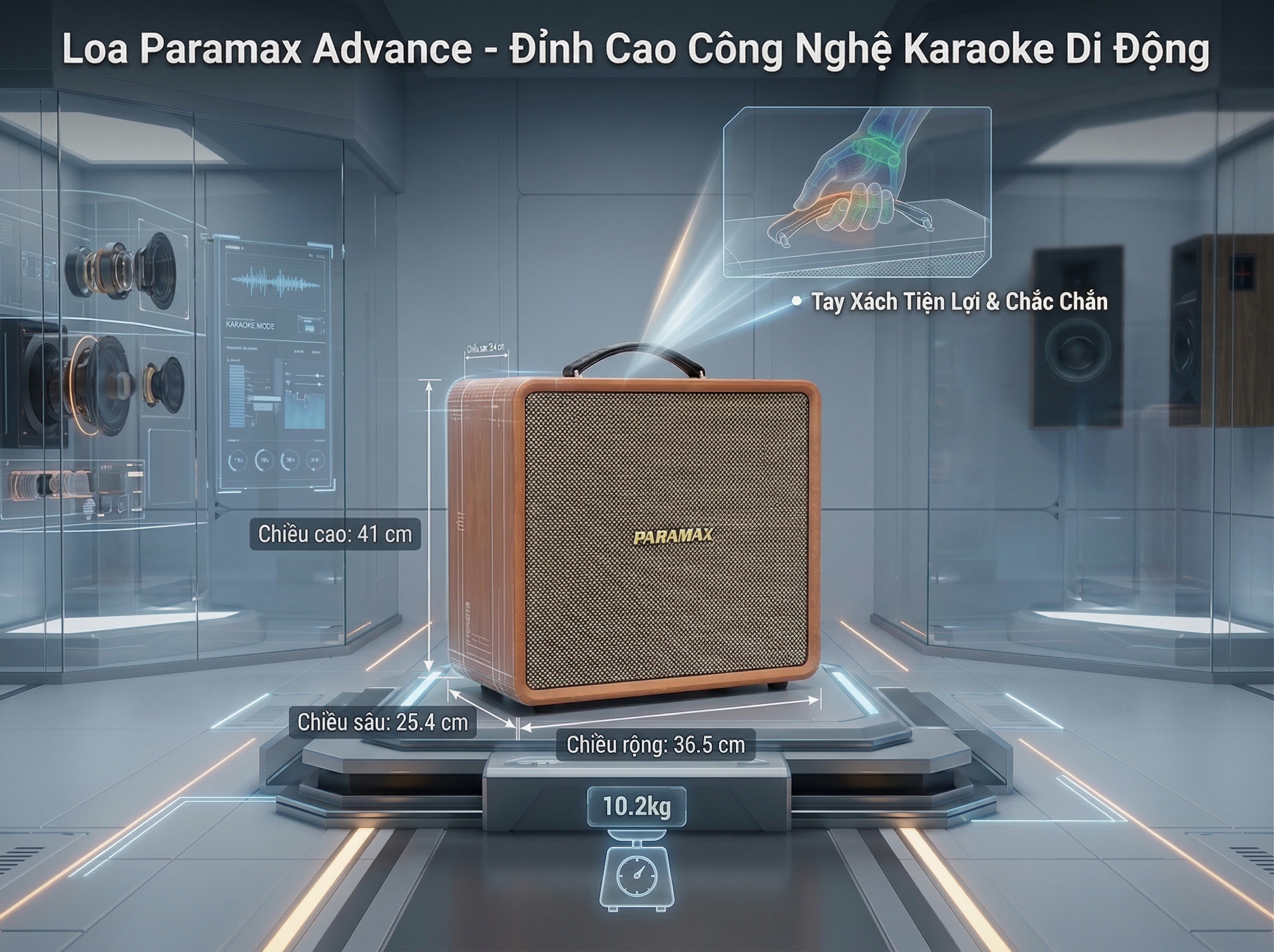 Nhờ thiết kế linh hoạt và công nghệ âm thanh tân tiến, Loa karaoke xách tay Paramax Advance đáp ứng trọn vẹn mọi nhu cầu từ giải trí đến công việc: