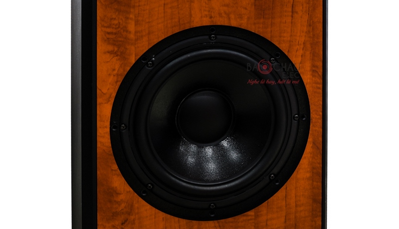 Thùng loa thiết kế dạng bass-reflex, mặt trước phủ lớp sơn đen mịn màng, phần thân thùng được bọc lớp vinyl vân gỗ anh đào (Cherry) làm toát lên sự sang trọng cuốn hút người xem ngay từ cái nhìn đầu tiên.