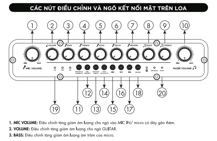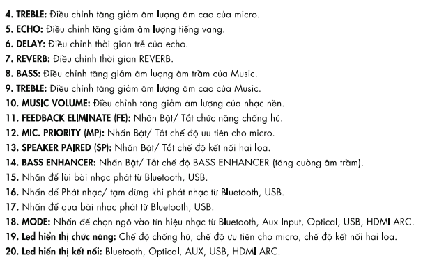 Bên cạnh đó, tính năng Feedback Eliminate hỗ trợ chống hú cực hiệu quả, đảm bảo buổi karaoke luôn thoải mái và trọn vẹn. Đặc biệt, Bass Enhancer giúp tăng lực bass cho những dòng nhạc mạnh như EDM, remix hay DJ. Tất cả đều được thiết kế trực quan, dễ sử dụng cho cả người mới lẫn những ai yêu thích ca hát chuyên nghiệp.