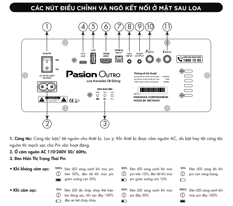 Với âm thanh bùng nổ, chi tiết, giọng hát mượt mà cùng thiết kế thời thượng, tiện dụng, Loa Paramax Pasion Outro là lựa chọn hoàn hảo cho mọi không gian giải trí từ karaoke gia đình, tiệc ngoài trời đến sự kiện, livestream.
