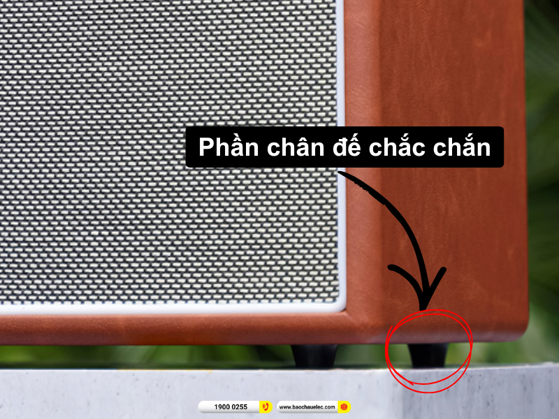 Chân đế chắc chắn giúp loa đứng vững trên nhiều loại bề mặt, bảo vệ thân loa và đảm bảo trải nghiệm âm thanh ổn định, dù sử dụng trong phòng khách, phòng ngủ hay không gian ngoài trời.