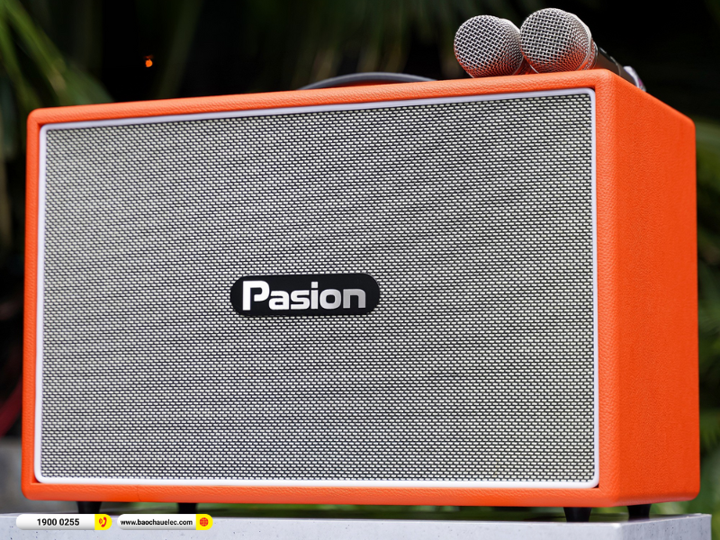 Loa karaoke xách tay Paramax Pasion Outro sở hữu phong cách thiết kế sang trọng và hiện đại với dạng hộp chữ nhật chắc chắn, mang đúng tinh thần của một thiết bị audio lifestyle cao cấp. Logo PASION được đặt chính giữa mặt trước, tạo điểm nhấn nổi bật, tăng tính chuyên nghiệp và dễ dàng nhận diện thương hiệu.