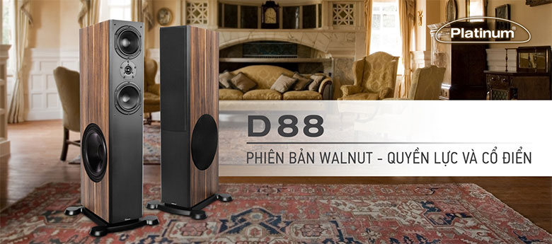 Dáng loa đứng với gam màu gỗ Óc chó (Walnut) chủ đạo, Paramax Platinum D88 (Walnut) thích hợp bố trí trong những không gian mang phong cách cổ điển, lãng mạn.