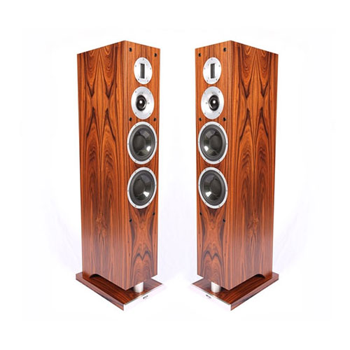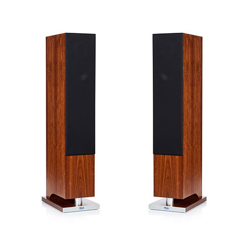 Thiết kế vát trống ở phía trước loa một khoảng và nối liền thùng loa với đế bằng một cọc nhôm khá lớn, thế nhưng ở phía sau, chân thùng loa kéo dài và dính liền với đế chứ không bị trống như ở phía trước, ấn tượng, nhất là khi phối hợp cùng một trong hai màu Rosewood hoặc Ebony.