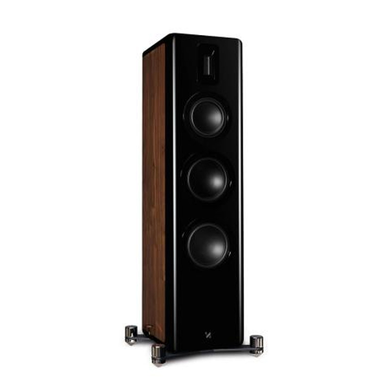 Với tùy chọn hoàn thiện gỗ óc chó, thùng loa vẫn giữ nguyên các vùng màu đen piano tại vách mặt, mặt trên và bên dưới, trong khi hai vách bên và mặt sau loa được phủ lớp veneer gỗ với các vân đẹp mắt