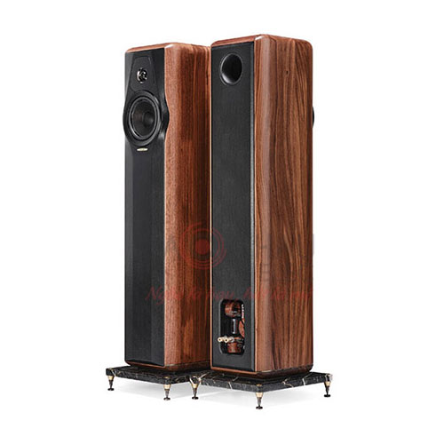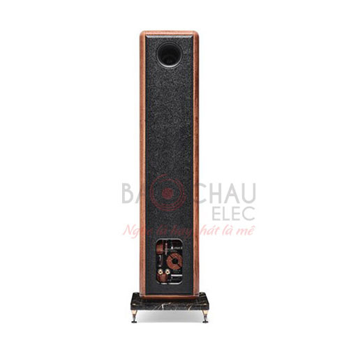 - Vật liệu thùng loa: Gỗ óc chó nguyên khối (nhiều lớp), mặt trước và mặt sau phủ da bò Ý