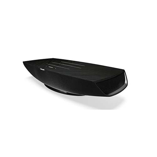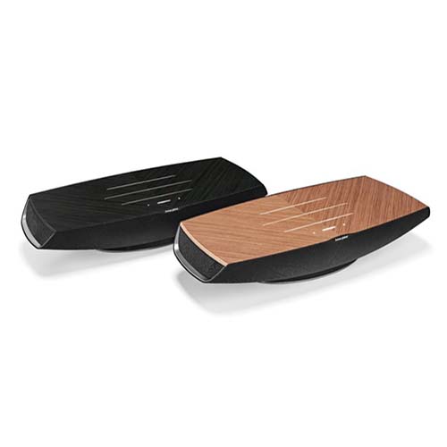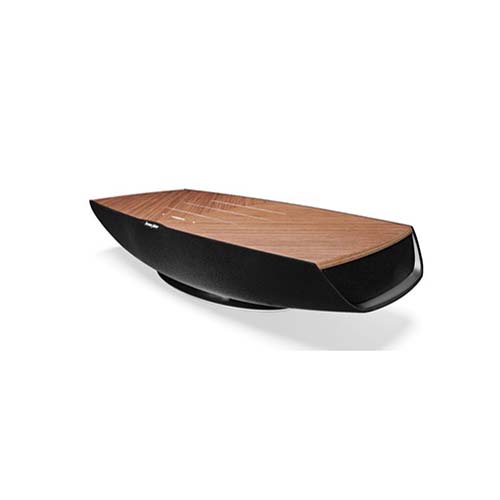 Mặt trên của loa là các phím điều chỉnh âm lượng và các đường sáng trên mặt gỗ veneer sẽ báo các chế độ hoạt động, dịch vụ stream nhạc nào đang được sử dụng và cả ngõ vào nào đang được kết nối.