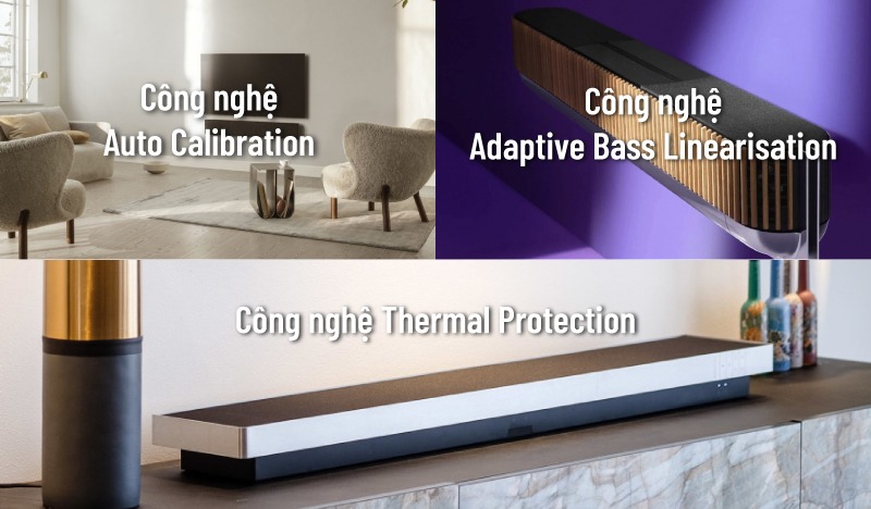 Công nghệ Auto Calibration (Tự động cân chỉnh âm thanh): Đây là tính năng thông minh giúp loa soundbar B&O tự động phân tích môi trường âm học của căn phòng. Nhờ sử dụng micro tích hợp và thuật toán xử lý âm thanh, hệ thống sẽ đo lường độ vang, vị trí đặt loa, khoảng cách tới tường… Từ đó, loa tự điều chỉnh EQ và hiệu ứng âm thanh phù hợp, đảm bảo người nghe luôn có trải nghiệm tối ưu dù ở không gian lớn hay nhỏ.
