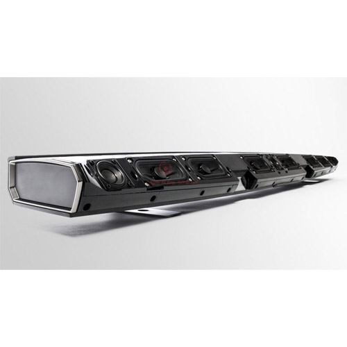 - Thiết kế là một loa thanh 3 kênh (trái (left), phải (right) và trung tâm (center)), được trang bị tổng cộng 9 củ loa con và mạch ampli tích hợp Class D 6 kênh, chia đều cho 3 kênh âm thanh.
