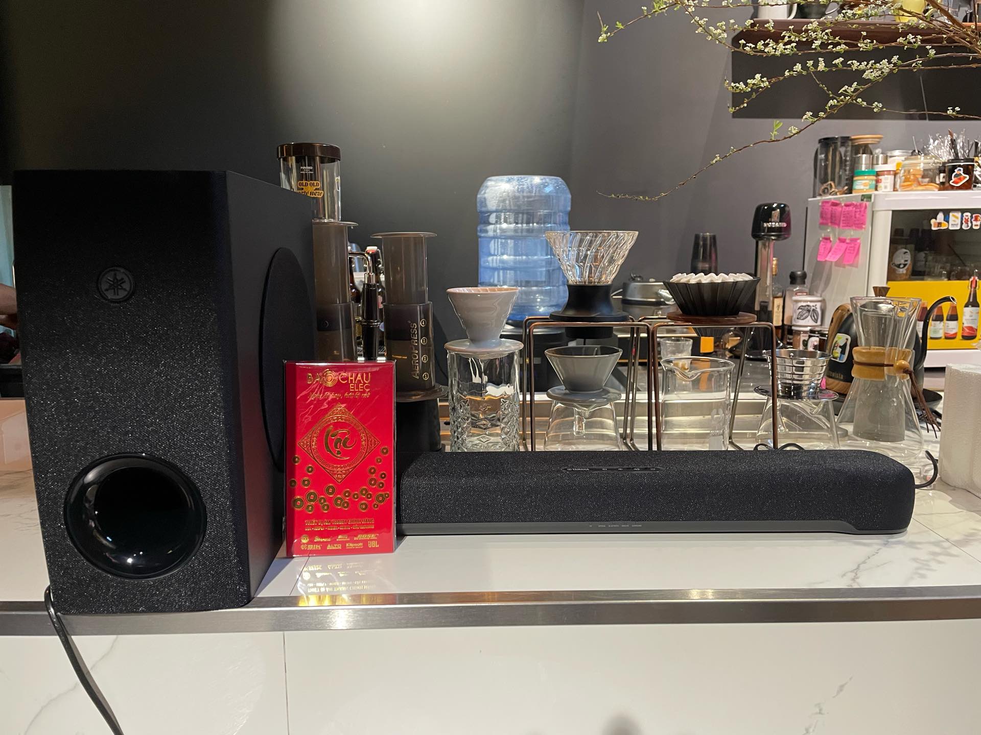 - Loa thanh nhỏ gọn bao gồm 1 chiếc subwoofer không dây giúp cảm nhận chất bass mạnh mẽ sống động