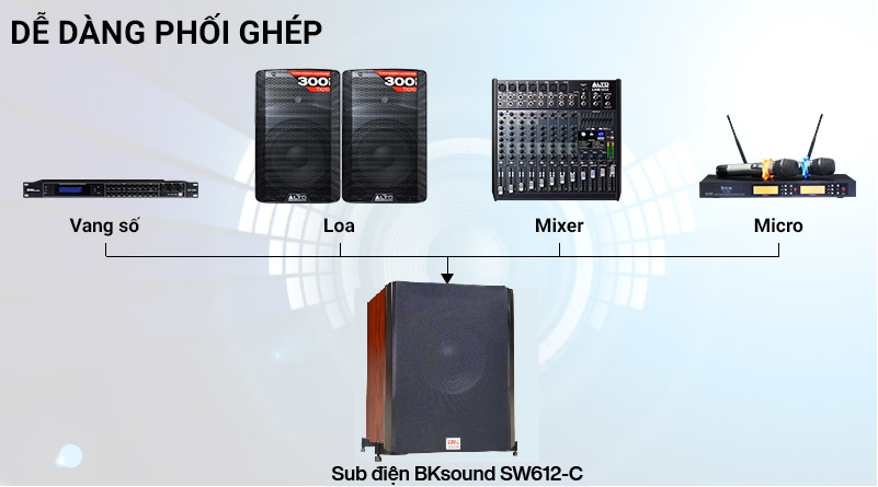 Độ nhạy đạt 91dB, không kén chọn các thiết bị âm thanh đi cùng loa sub BKSound SW612-C thích hợp với nhiều bộ dàn karaoke, xem phim, nghe nhạc với nhiều trải nghiệm mới mẻ, thú vị cho người dùng.