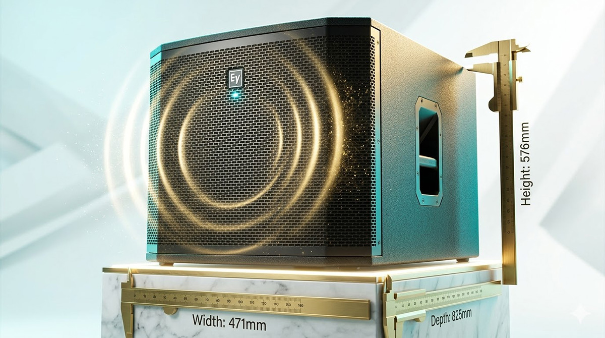 Về kích thước, loa có thông số 471 x 576 x 825 mm giúp tối ưu kích thước thùng để tái tạo dải trầm sâu và mạnh mẽ. Trọng lượng 41.7 kg cho thấy kết cấu chắc chắn và hệ thống linh kiện bên trong được đầu tư kỹ lưỡng, đảm bảo khả năng hoạt động ổn định trong thời gian dài.