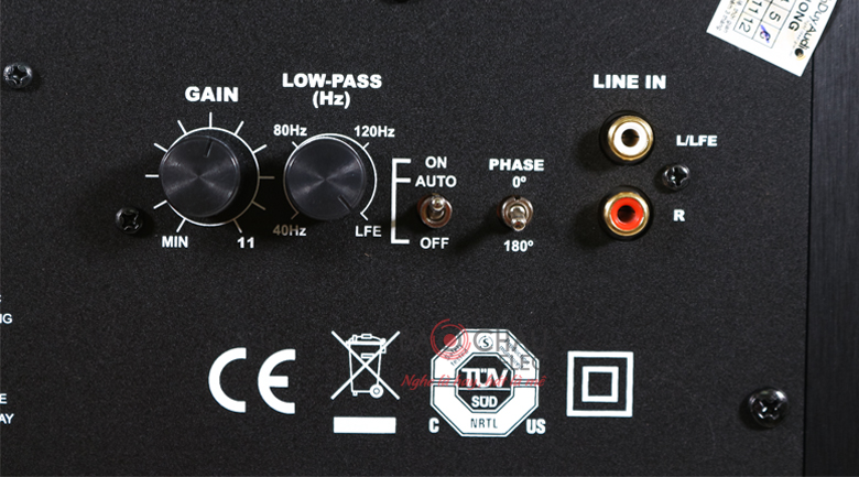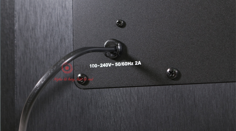 Dây nguồn, công tắc nguồn, cổng kết nối cùng các thông số kỹ thuật đều được bố trí ở mặt sau. Tại đây còn có 1 lỗ thông hơi nhằm tạo ra hiệu ứng cộng hưởng trong thùng loa, dù loa kích thước nhỏ thì âm trầm vẫn rất sâu lắng.