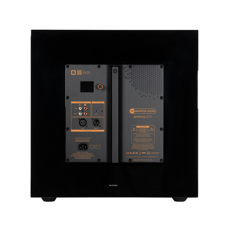 Mặt trước là củ loa với tấm lưới ê căng che chắn. Mặt sau của loa sub Monitor Audio Anthra W10 được thiết kế gọn gàng với hệ thống tùy chỉnh, màn hình LCD và thông tin sản phẩm, tạo điều kiện thuận lợi cho việc thiết lập và điều chỉnh các thiết lập âm thanh.